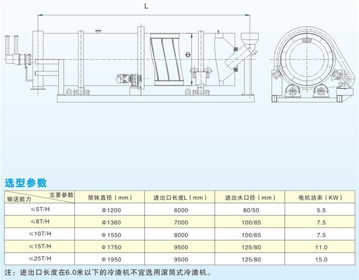 内部为双层水夹套式的冷渣机,内筒内布置螺旋叶片、渣与内夹层进行热交换。控制方式:变频调速。具有输送能力大运行平稳,便于内部检修等特点。广泛应用于大渣量的循环硫化床锅炉底渣的冷却、输送。